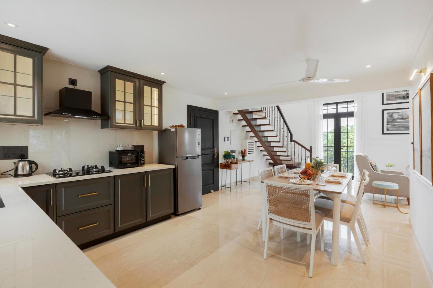 Located in Marna, Grosvenor House by Hireavilla - 3BHK Duplex with Pool in Assagao provides accommodation with private pool, free WiFi and free private parking for guests who drive. The air-conditioned accommodation is 4.8 km from Chapora Fort. The property is non-smoking and is14 km from Thivim railway station.
